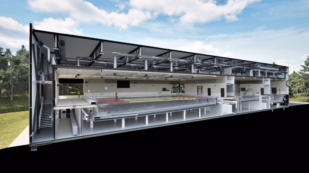 HemTag utvecklar Myrsjö badhus i Nacka. Simhallen kommer förutom en huvudbassäng och multibassäng att innehålla gym med utrymme för gruppträning och studieplatser för unga.